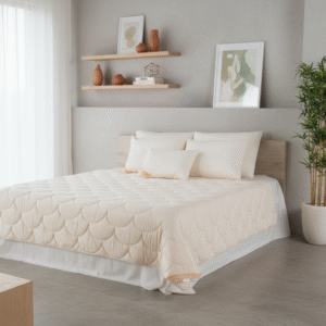 The bamboo duvet fabric is characterized by excellent breathability, natural hypoallergenic properties, and effective moisture wicking, ensuring a dry and fresh sleeping environment. Its antibacterial qualities, exceptional softness, and long-lasting durability provide a luxurious sleep experience.