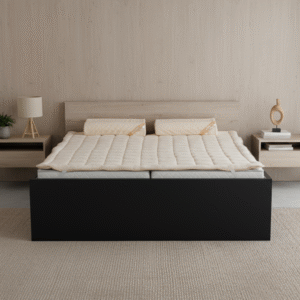 Tkanina nadvložka je izdelana iz naravnih in hipoalergenih materialov, kar pomeni, da ne povzroča draženja kože in nudi nežno udobje med spanjem.