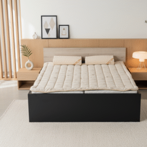 Gladka in trpežna tkanina prispeva k splošnemu udobju, saj učinkovito odvaja vlago in uravnava telesno temperaturo, kar omogoča udobno spalno okolje.