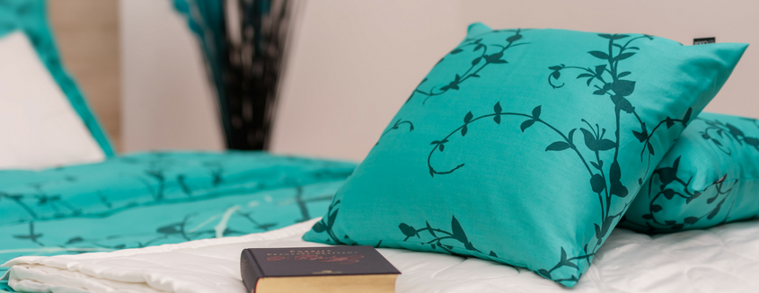 Barve morja, neba, neskončnosti. Turkizen ton, ki bo vaš spalni prostor popolnoma spremenil, umirja nežen preplet bele in svetlo granitne barve. Skrbno izbran preplet motivov prinaša harmonijo in radost.