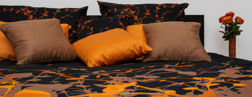 Posteljnina Savana bo v tem čudovitem prepletu barv v vašo spalnico prinesla očarljiv navdih in pozitivnost. Oranžna barva je barva radosti in veselja, ki se bo s kančkom zlate in rumene zelo lepo zlila na črno podlago.