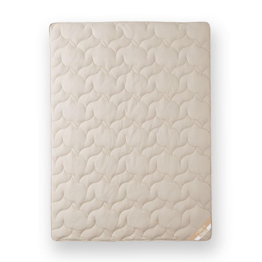 Odeja je prijazna do kože, saj je izdelana iz naravnih, hipoalergenih materialov, ki ne dražijo in omogočajo nežno udobje med spanjem.