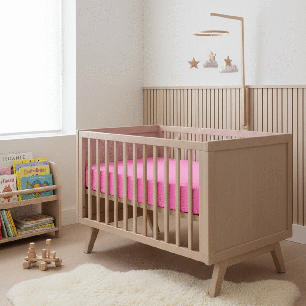 Rjuha je izdelana iz vrhunskega enobarvnega satenastega bombaža. Elastika jo odlično prilagodi ležišču in ostaja na svojem mestu tudi, če se otrok med spanjem zelo premetava. Tkanina iz 100 % bombažnega satena je izjemno prijetna na dotik in nežna do občutljive otroške kože.